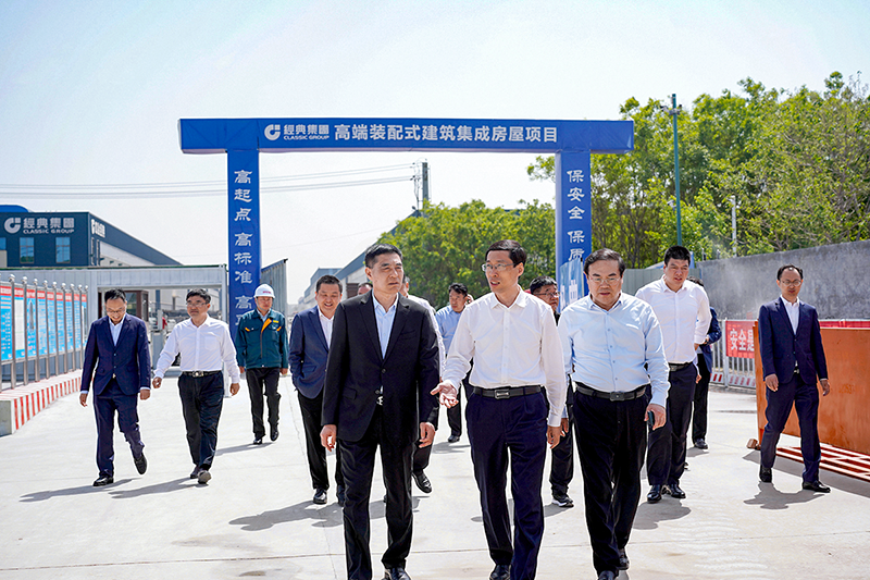 5月1日,濟寧市兗州區委副書記、區長王營一行到高端裝配式建筑集成房屋項目現場調研,指導省重大項目建設、安全生產等有關工作。兗州工業園區黨工委書記、管委會主任王智,經典集團董事會主席苗樹文,董事長史振華,區政府辦、發改局、新兗鎮主要負責人等陪同調研。