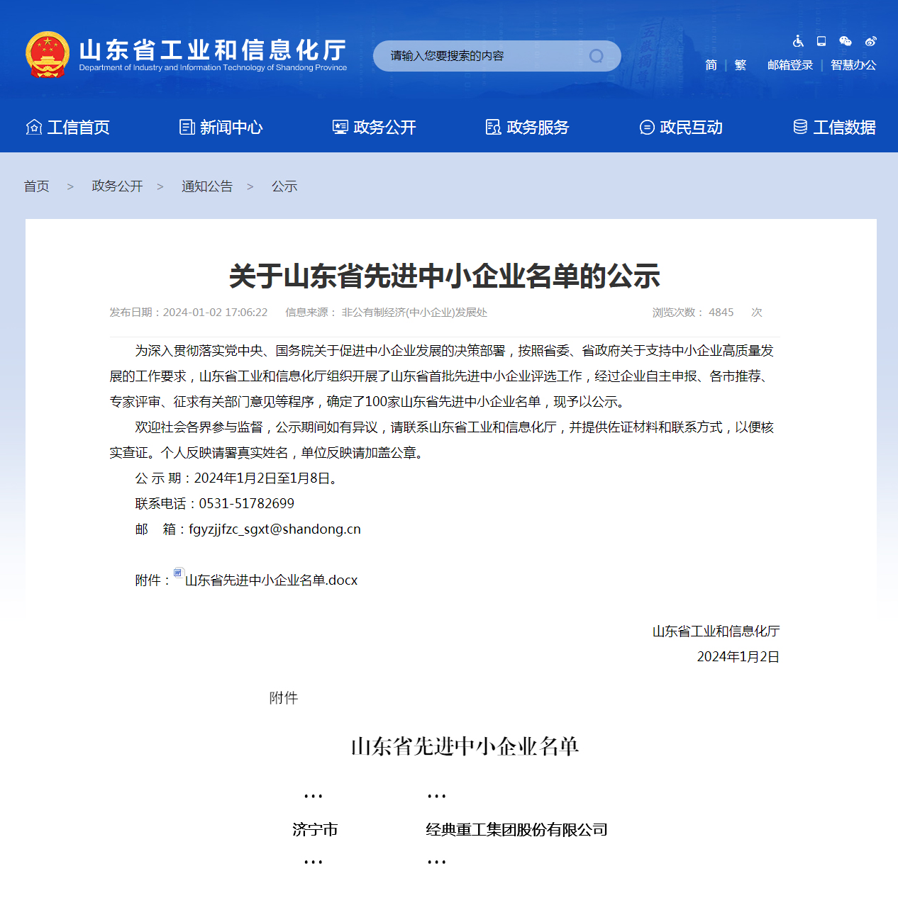 近日,山東省工業和信息化廳組織開展了山東省先進中小企業評選工作,最終確定了100家山東省先進中小企業名單,經典集團成功入選。值得一提的是,這是山東省首次評選先進中小企業,并每三年評選一次。